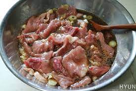 고기는 한겹 한겹 떼어서 양념장에 퐁당~ 넣어 주물 주물 양념이 잘 베이게 재워주었어요~!