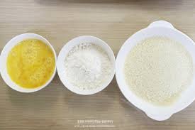 계란물-밀가루-빵가루 순서대로 고기에 입혀주세요.