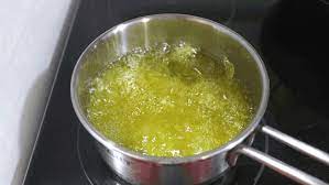 이제 냄비에 기름을 넉넉하게 넣고 튀기기 전에 빵가루를 살짝 넣어 봐서바로 빵가루가 올라오면 적당한 온도예요.