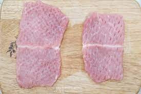 제일 먼저 돼지고기를 두드려서 펴주세요.
