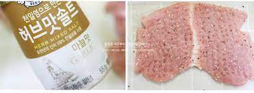 이제 고기에 밑간을 합니다.저는 허브 솔트가 있어서 뿌려 주었는데 없으시다면 소금과 후추로 밑간 을 해주시면 됩니다.