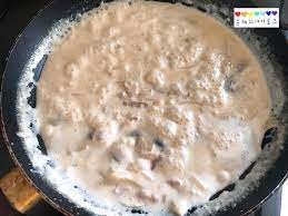 체다 치즈가 잘 녹을 때까지 보글보글 계속 끓여줍니다.크림소스를 끓일수록 색깔이 점점 진해져요!그리고 중간에 크림 소스 간을 보셔서 소금으로 간을 맞춰주세요.저도 크림 소스가 밍밍해서 소금을 조금씩 넣어가면서 간을 맞췄어요!