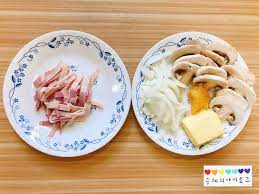 크림파스타를 만들기 위해필요한 재료들을 알려드릴게요.올리브유 약간, 파스타 건면 1인분, 베이컨 작은 거 4장, 체다치즈 2장, 소금 약간, 후추 약간, 흰우유 180ml, 양송이버섯 2개, 다진 마늘 한 스푼, 버터 한 숟갈, 채 썬 양파 적당량